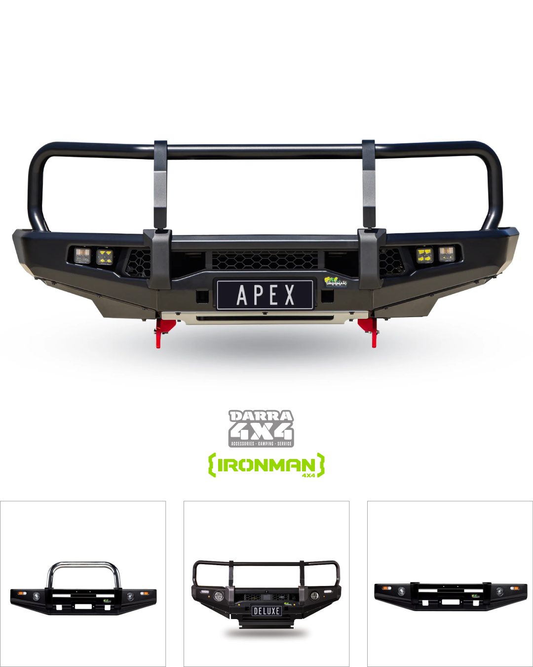 Shield your rig with an IRONMAN 4X4 Bull Bar. ADR compliant and compatible with 12,000lb winches, it offers durability and style. Colour coding and fitting services are also available.