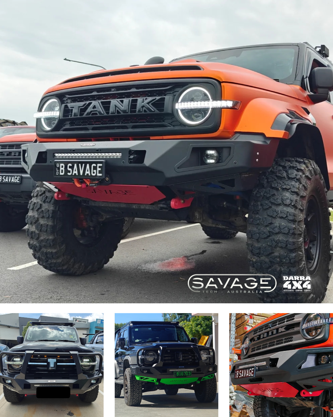 SavageTech Bull Bars for TANK deliver rugged strength and bold styling for serious off-road performance. Built tough with premium materials, they feature winch mounts, rated recovery points, and a distinctive, aggressive design.