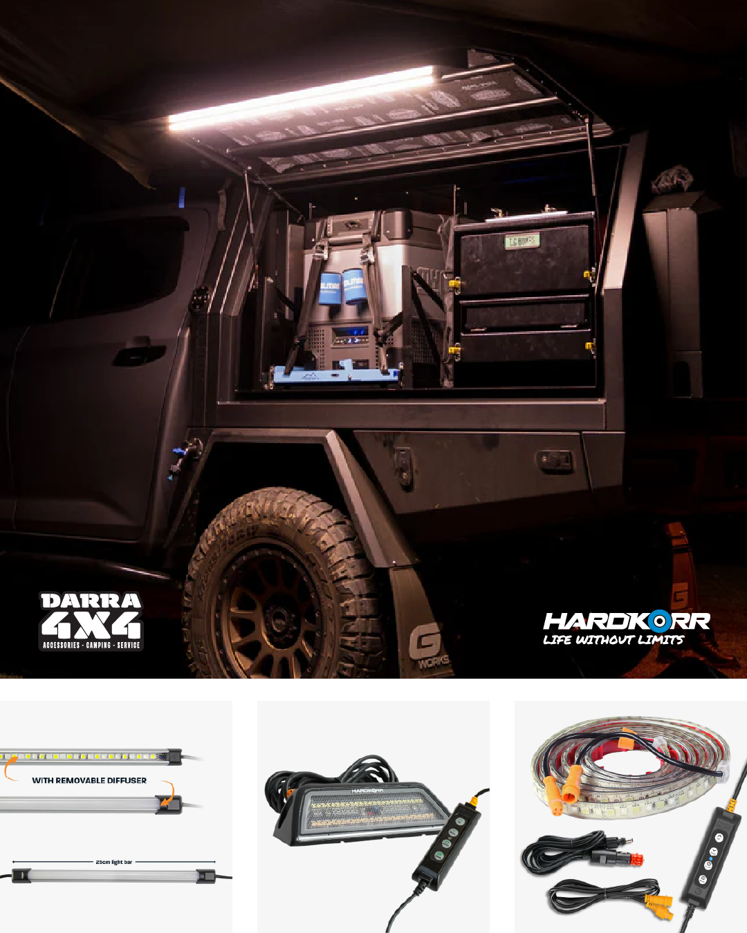 Hardkorr’s canopy and cargo lights are tough, waterproof, and easy to install—delivering bright, reliable illumination for utes, 4WD setups, and off-grid adventures, day or night.